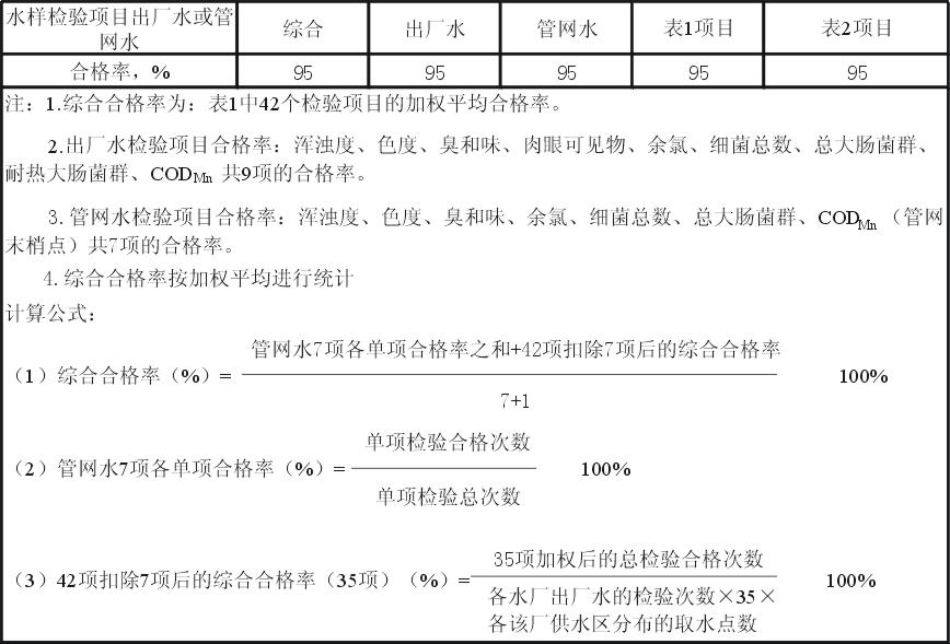 6.8水質(zhì)檢驗(yàn)項(xiàng)目合格率要求見表4。