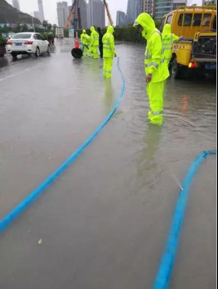 下午,管網(wǎng)公司出動(dòng)的強(qiáng)排車在灣仔江海路、藍(lán)盾路、旅游路、南洋鋪村等水浸地點(diǎn)進(jìn)行強(qiáng)力抽排。部分已暢通路段的搶險(xiǎn)人員轉(zhuǎn)移到這些水浸區(qū)域進(jìn)行支援。管網(wǎng)公司搶險(xiǎn)班組將加強(qiáng)巡查及蹲點(diǎn)抽排,確保嚴(yán)重水浸路段盡快恢復(fù)正常通行。
