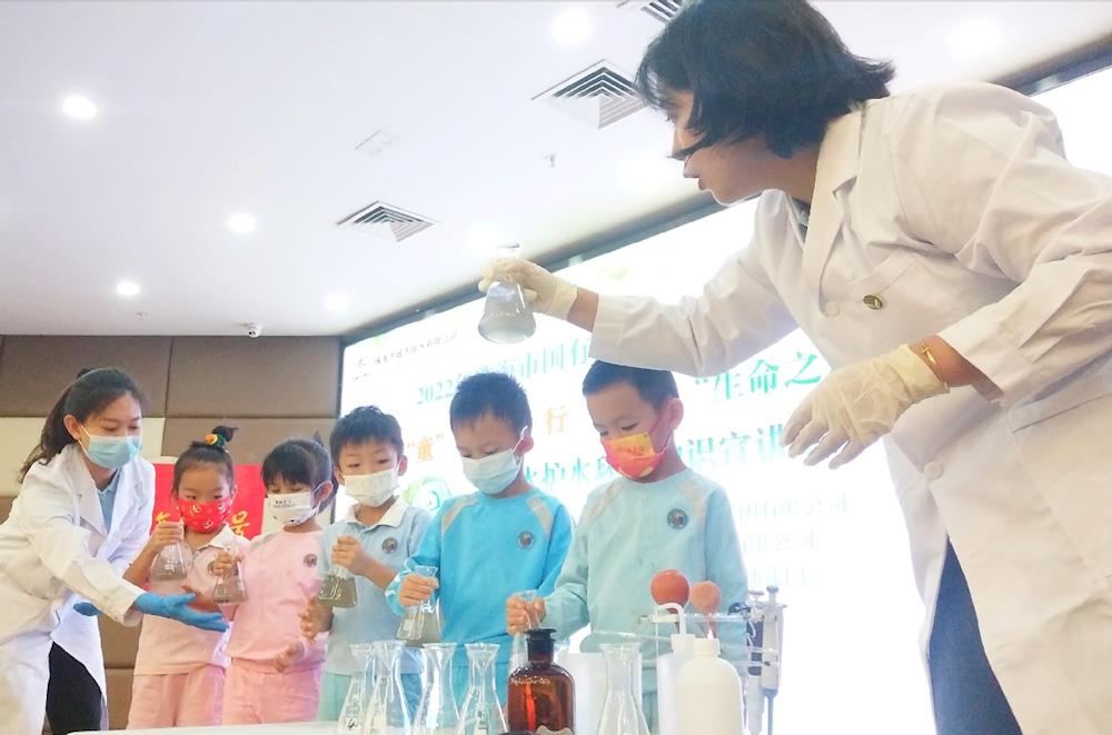 “污水變成清水前需要經(jīng)過怎樣的處理?為什么臟水不能喝?小朋友知道里面都有哪些壞東西嗎……”在節(jié)水護(hù)水環(huán)保課堂上,為了便于孩子理解接受,宣講人員精選教案,通過卡通動(dòng)畫視頻方式宣講環(huán)保知識(shí),介紹污水處理過程,講解各種藏匿在污水中的有害微生物,并通過現(xiàn)場實(shí)驗(yàn),直觀展示污水由黑變清的過程,通過實(shí)驗(yàn)互動(dòng)傳播城市文明理念,增強(qiáng)孩子的節(jié)水意識(shí)。