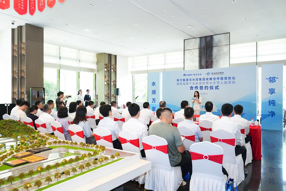 當天,項目合作雙方——珠海格力集團有限公司與珠海水務環(huán)境控股集團有限公司簽署戰(zhàn)略合作框架協(xié)議,合作圍繞項目資源合作、供排水保障服務、工程領(lǐng)域及水務科技合作創(chuàng)新等維度展開,雙方將對接海島水資源利用方案、推進高品質(zhì)飲用水入戶,水控集團還將為格力集團項目提供“全鏈條”水務支持,并以新規(guī)高品質(zhì)人居項目為試點,推進市政直飲水入戶,探索水務科技應用。簽約儀式上,雙方共同啟動珠海首個高品質(zhì)飲用水示范人居項目。此次合作既是國有企業(yè)跨領(lǐng)域協(xié)同服務民生的創(chuàng)新實踐,也為珠海構(gòu)建更安全、更健康的城市供水網(wǎng)絡(luò)按下“加速鍵”。